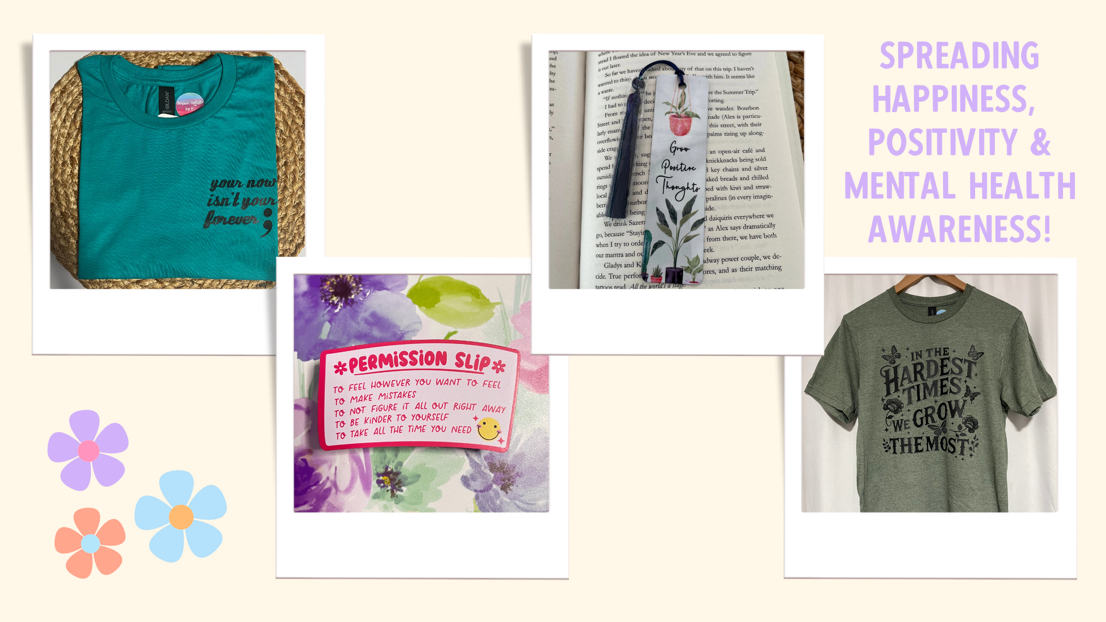 Each piece I create is inspired by mental wellness, the beauty of change, and the power of gentle reminders. I love spending time with my boyfriend, being out in nature, baking, cooking, and connecting with others at markets. Some of my favorite things? Cozy nights in, homemade pizza, and a good Hallmark movie.